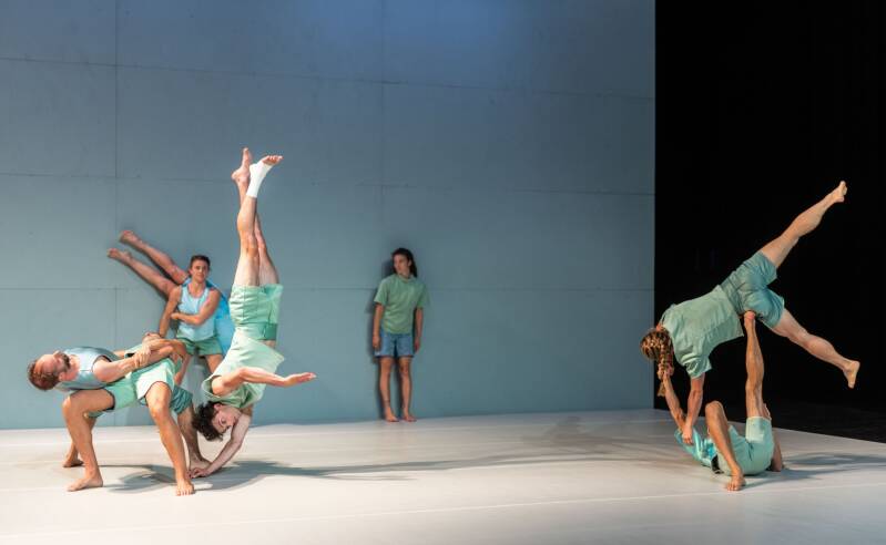 Dan de eigenlijke voorstelling. Op het podium slechts één decorstuk. Een muur. Een hoge muur. Mij wacht nu een bijna onmogelijke taak om te beschrijven wat ik die voorbije zaterdag zag. Ik zag acht dansers dingen doen waarvan ik dacht dat het onmogelijk was. Het begon rustig aan. Alsof u ons wou voorbereiden op wat komen zou. Want wat komen zou, tartte elke verbeelding. Acrobatie en dans vielen op een natuurlijke en vloeiende wijze samen. Elegantie en souplesse waren de steeds aanwezige constanten. Wat ik tijdens de voorstelling wel zag veranderen, is hoe die muur meer en meer deel wordt van de voorstelling. Alsof die muur het negende lid wordt van uw gezelschap. Lichamen kleven zich tegen de muur. Gesteund en gestut door voeten en handen van andere dansers. Alles loopt in elkaar. Over elkaar. Lichamen haken in elkaar. Bouwen op elkaar. Een wonderbaarlijke choreografie ontwikkelt zich tegen de muur. Aan de muur. Op de muur. De muur lijkt het verbindende element te worden.