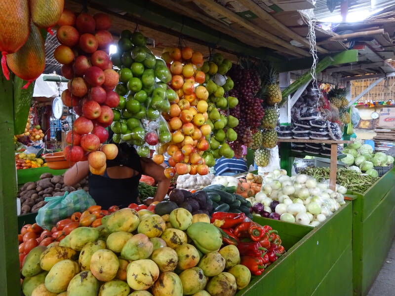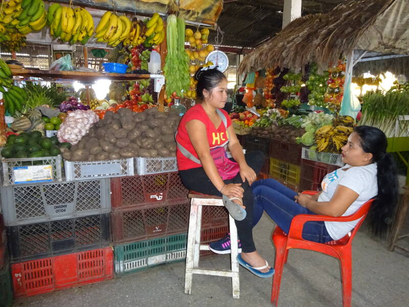 Vandaag gaan we naar de lokale markt. Bij de Lourdeskerk. Thuis gaan we nooit naar de markt. De macht der gewoonte voert ons steeds naar het warenhuis. Nooit (of bijna nooit) zal u ons treffen op een markt. Op reis doen we het anders. Dan gaan we bijna altijd naar een markt. Omdat we op die plek pas echt het besef hebben midden in het leven te staan. Hier hebben we echt het gevoel dat wij ons mengen. Dat wij deel uitmaken van een gemeenschap. Wij blijven niet angstvallig aan de kant staan. Geen angsthazen. We gooien ons. Wij dompelen ons onder. Wij kijken om ons heen. Naar het leven. Naar het echte leven. Hier wordt geroddeld. Hier wordt gebabbeld. Hier wordt gediscussieerd. Dit is het epicentrum van het grote en het kleine nieuws. Nieuwtjes gaan van mond tot mond. Toch wordt er niet enkel gepraat. Er gebeurt meer. Hier wordt gedronken. Hier wordt gegeten. Hier wordt alles ingekocht. Voor het middageten. Voor het avondeten. Hier zien wij producten; die we voordien nog nooit hadden gezien. Waarvan we voordien het bestaan nooit hadden vermoed. Maracuya. Lulo. Guanabana. Curubo. Granadilla. Mamoncillo. Cherimoya. Al dat nieuwe lekkers om ons heen. We kunnen niet anders dan proeven. We kunnen niet anders dan smaken. Toch beperken we ons niet enkel tot het proeven. Onderdompelen betekent ook ontmoeten. Wij zijn het Spaans niet machtig. Toch maken we contact. Door simpelweg een duim op te steken. Door te lachen. Door een hand te schudden. Door niet weg te kijken maar diep in de ogen te kijken. Dan hoeft praten niet altijd. Non-verbale communicatie werkt ook. Soms werkt het zelfs beter. Zonder woorden kan er geen spraakverwarring zijn. Ik lach en kijk om mij heen. Ik denk dat het leven zoveel eenvoudiger zou kunnen zijn als er wat vaker zou gezwegen worden. Als iedereen niet de behoefte had te moeten praten.