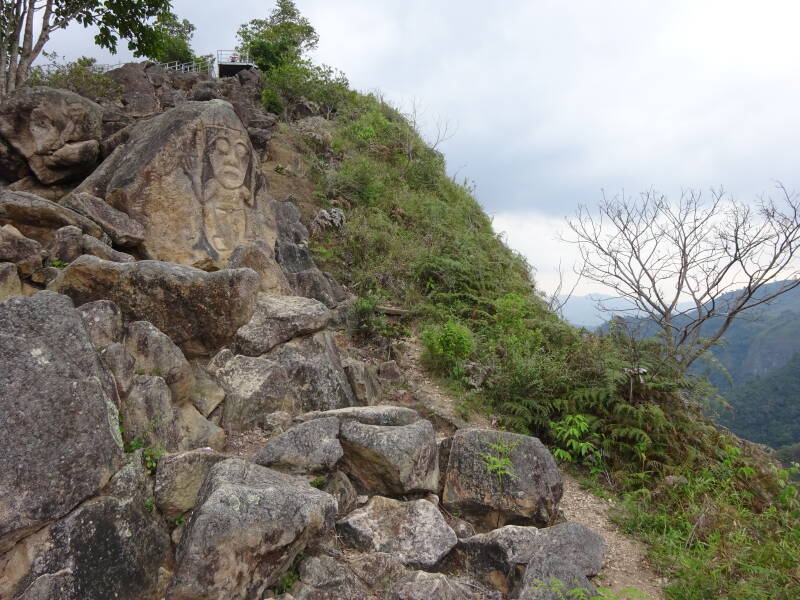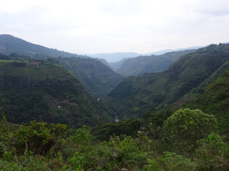 De laatste halte is La Chaquira. Naar deze plek komen wij omwille van de beelden, uitgekapt in de rotsen. Dat zou de voornaamste reden kunnen zijn. Dat zou de enige reden kunnen zijn. Toch is er meer. Naar deze plek moet gekomen worden omwille van de ligging. Omwille van het uitzicht. We zijn al getrakteerd op prachtige vergezichten. Maar deze plek is werkelijk bijzonder. Bijna uniek. Deze plek is heerlijk. Wij kijken uit over een canyon waar tweehonderd meter lager de Río Magdalena in bochten slingert. Dit is werkelijk adembenemend. Prachtig is nog een te beperkende omschrijving. Het is meer dan prachtig. Veel meer. Dat uitzicht zou ons doen vergeten waarom wij eigenlijk naar hier gekomen zijn. Daarvoor moeten we die canyon onze rug toekeren. En omhoog kijken. Naar de godin Chaquira. Want zij zou het zijn die in de rotsen werd uitgekapt. Zij staat met haar armen omhoog. Alsof ook zij het niet lijkt te beseffen. Alsof ook zij niet weet wie precies deze bijna goddelijke plek heeft gecreëerd.